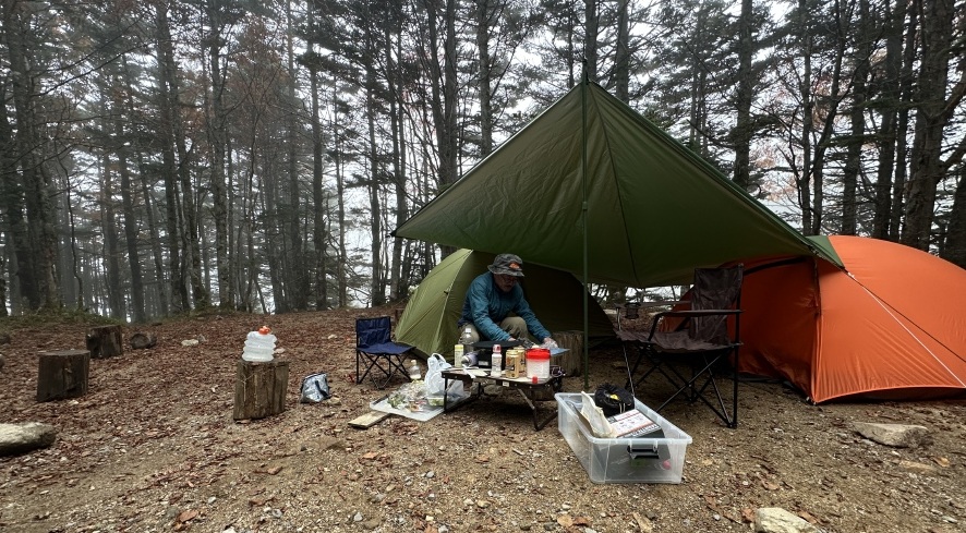 前日は千葉からやってくる山友を甲府駅でピックアップして、大弛峠へ。 夕焼けは分刻みで染まってゆく、遠い山並みも、手前の紅葉した木々も赤みを帯びて変化していった 感動しまくりの夕焼けだった 朝、天候の様子をみながら出発した 紅葉は今一つだったけど朝日岳から見た富士山に感動した