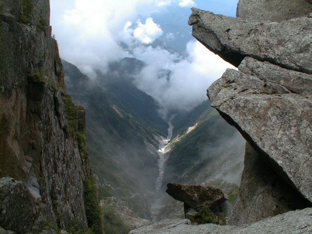 | 迷惑台風九号のおかげで塩見岳行き中止、結局台風は来ないと確認できたのは13日早朝。短縮日程で去年に続き木曽駒へ ≪8月13日≫ 午前中大阪出発・・・・木曽福島〜木曽駒高原17時到着 別荘地で登山者らしき人は見当たらず、暮れかけに2名の下山者に会うのみ。車中泊 ≪8月14日≫ 朝6時10分出発 朝から天気は上々で気分良く沢沿いに登る。しばらくして工事中の沢を渡り、いよいよ樹林帯の急登が始まり、ちょうど喉が乾く頃4.5合目の水場に着く。水はチョロチョロだが実にタイミングの良い場所である。 ![]() 引き続き樹林帯を登るとやがて少し平坦なところをくりかえす。この辺りからは木曽駒の姿が見え隠れする。 ![]() 標高2400mの7合目到着。ここは昨年焼失の避難小屋の鉄骨だけの無残な姿が・・・。 下山途中の3人パーティと出会う。早速ひと休みと情報交換。 ここからはトラバースぎみに8合目へ。岩の多い8合目はもうハイマツ帯5〜6m下には岩の間からたっぷりの水が湧いて落ちている。 自然の水場は最後であろう。小屋の水は使わなくてよいほどに2.5リットル補充する。ガレ場を急登すると、もう石垣で囲まれた”玉の窪山荘”が見えてきた。軽く昼食をして大休憩。今回は初めての小屋泊まり、荷物は軽く、時間が余りそうである。 とうとう山頂へ着いた。 ![]() 人がいっぱいである、ほとんど駒ヶ根からロープウェイでの登山者とゆうより、ハイカーの装い。 6時間かけて登ってきたのに、ちょっと残念なような、場違いのような気分である。いつになくビールを買って一気に飲んでみた。酔いが廻り少々頭が重いが時間をたっぷりとって、衣類を乾かし景色を眺める事に・・・ 時々ガスの切れ目から宝剣岳と、伊那前岳が姿を現すが遠方の景色は全く見えず午後はダメな様だ。 中岳を超え”天狗山荘”へ着く。初めての小屋泊まりで要領がわからず、小屋の兄ちゃんに、いろいろ相談してみるが、まだはや過ぎるらしく周りには宿泊者らしきものは見当たらない。どうも小屋の休憩時間の様で、兄ちゃんには悪かったかな! はっきりしない天気予報のせいか、満室にはなっていない。1人当たり1畳分、小屋では充分な領域とか・・・・ 同部屋の他の客人たちとわいわいやっているうち、他人のイビキも知らぬうち寝てしまった。 深夜目が覚めると外は大雨、今回テント泊でなくて大正解。 ≪8月15日≫ 朝、雨は止んでいたが、ガスで外は何も見えそうも無い。 宝剣岳からのご来光を予定していたが仕方無い。 ![]() もう一度布団にもぐりこむ。ゆっくりしすぎて山荘を出たのは私が最後の者になった。 このガスでは予定の三の沢岳からの中央アルプス全山展望も出来そうに無く、変更せざるを得ない。下山するのみ。 同じ登山道を下るのも能が無い、木曾前岳から麦草岳経由のルートで下山することにした。 ![]() ![]() このルートはくせものである、危険な個所(牙岩など)が多くほとんど通行者がいないのか、朝露のブッシュで衣服がびしょびしょになった。 ![]() ところがこのルートには、花が多くずいぶん心を落ち着かせてくれる。2時間は余計にかかったかも・・・。7合目で本道に合流、荷物も軽く木曽駒高原へ着く。 ![]() ちょっと廻って”駒の湯”の温泉でゆっくり汗を流した。 この山行の花のアルバム |