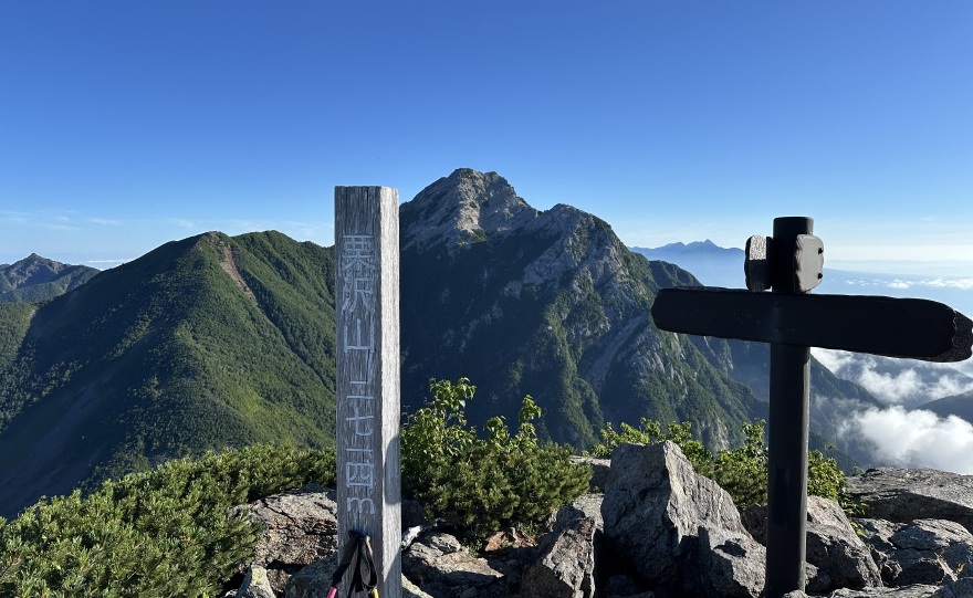 途中からも甲斐駒が見えていたけどここは360度見渡せる。